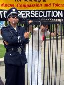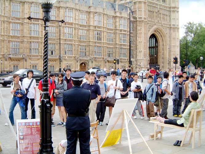 一位英国女士在看过酷刑展后,走到一位学员跟前,在她耳边轻声说道:“我将为你们祈祷,你们的举动令我敬佩,上帝保佑你。”