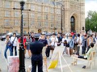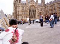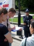 很多来往的游客在阅读完图片解说后,主动上前与学员交谈,并要求在征签表上签名。人们都被这残酷的场景深深震撼着,不少人掏出照相机拍照,有的向学员们竖起大拇指致意,或是静静的站着,久久不愿离去。