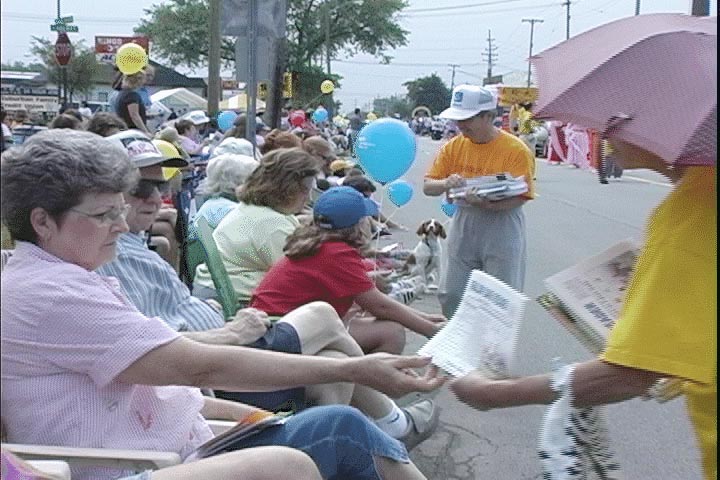 ![]() 炼功花车 | ![]() 游行队伍 | ![]() 派发传单 |