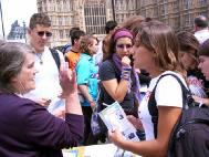 活动前学员们在学法交流中认识到,我们活动的主题不仅是揭露中国正在发生的残酷迫害,更是为了展示大法弟子不屈的崇高精神和真善忍的伟大力量。记得我们刚开始讲真象时,许多世人及政治家们问,现在世界上到处都有血腥迫害,为什么我们要特别关注法轮功呢?法轮功有什么不同呢?这场“酷刑迫害与宇宙法理的撞击”展览就是为了回答人们这个问题。在展示残酷折磨的同时,我们也向人们传达了大法的美好与纯正,这一反一正一恶一善的强烈对比,让人们很容易就认清了江氏流氓集团的邪恶,于是人们主动在全球审江的签名表上签字,许多电视台的记者和报社记者也前来采访,学员们主动上前向人们讲解真象,几千份资料很快就发放一空。人们明白了,乌云是遮挡不了太阳的,在酷刑迫害与宇宙法理的撞击中,真理是永存的,任何企图动摇人们正信的暴力酷刑都是徒劳无益的。