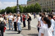 很多来往的游客看到图片和真人演示,主动上前与学员交谈,并要求在征签表上签名支持法轮功学员反迫害。人们都被这残酷的场景深深震撼着,不少人掏出照相机拍照,有的向学员们竖起大拇指致意,或是静静的站着,久久不愿离去。