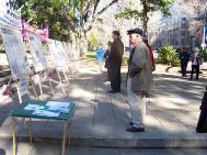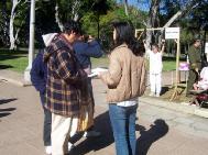 ![]() 人们仔细看真象展板 | ![]() 学员认真讲真象 | ![]() 酷刑展带来无声的震撼 |