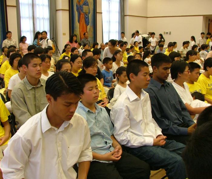 首届海外法轮大法小弟子修炼心得交流会是2003年12月27日在台北市石牌国中礼堂举行的。因天时地利和台湾大法弟子的精心筹办,当时共有来自台湾各地及日本、马来西亚等部份海外地区的小弟子、家长及来宾等约1200人参加了法会。