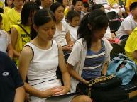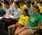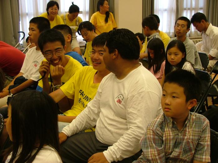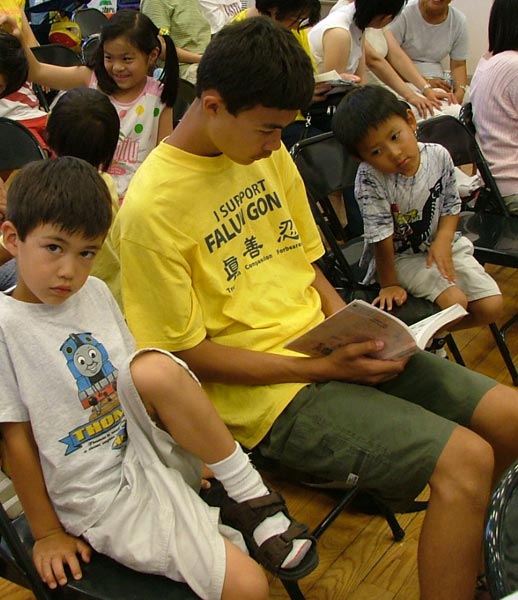 1、年龄各异的大法小弟子2、法会正式程序从晚6时的全球同步发正念开始3、宣读修炼心得交流稿并表演讲真象的文艺节目