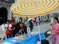 德国议员伯格博士(Dr. Berg)恰巧路过广场,他告诉学员他支持法轮功,并将利用一切可能的机会与中国官员谈论此问题。