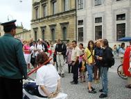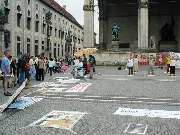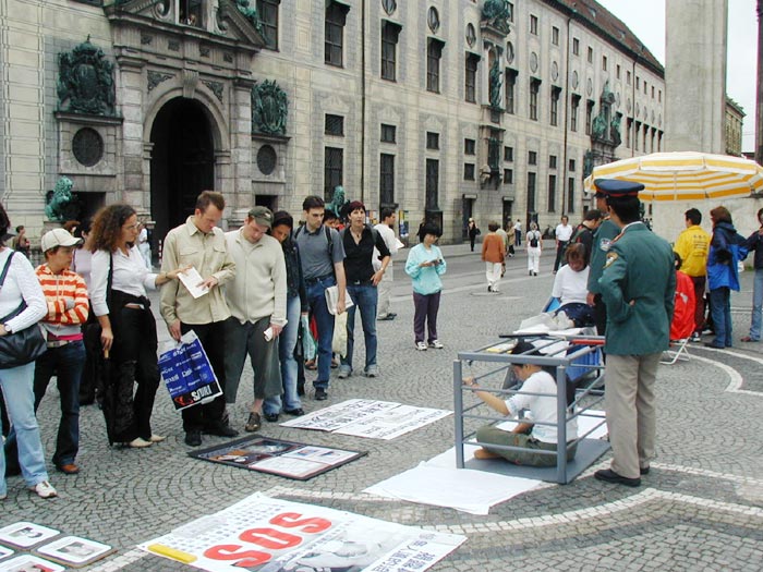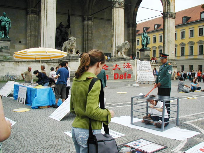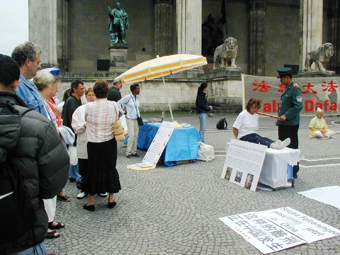 在整个活动期间,很多人都被法轮功学员受迫害的图片、法轮功学员高蓉蓉被警察毁容照片、特别是被酷刑的表演震惊了,人们无法相信这是发生在现代社会里的事实,而酷刑展的前面用中德文告诉人们,这样的事在中国每天都在发生。许多人纷纷在诉江的征签簿上签名。执勤的警察在了解了真象之后,马上在签名簿上签名支持诉江。