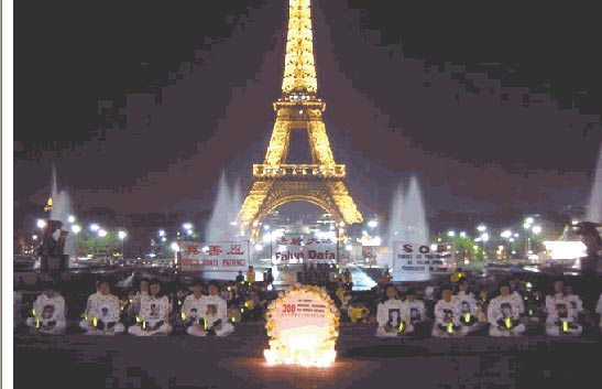 2004年7月16日,法国巴黎法轮功学员在施瓦西大街举办了真人模拟酷刑展示,围观的民众无不为之震撼。一位男子蹲在模拟酷刑展前泪流满面,他和学员们呆了整整一下午,并帮助向公众发法轮功真象资料。学员们第二天收到了一封来信,对酷刑展表示支持。有很多人给法轮功学员们打电话询问怎样开始学功。