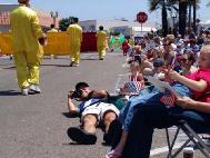 游行组委会的维勒 (Justin R. Weiler) 介绍,杭庭顿滩的国庆游行是美国人民庆祝国庆的传统节目,今年已是第100届。这一游行是美国西部规模最大的游行,也是美国著名的国庆游行之一。今年参加的队伍达350支、约2万人,沿途的观众保守的估计有30万人,很可能达50万,通过电视观看的观众至少有3百万。