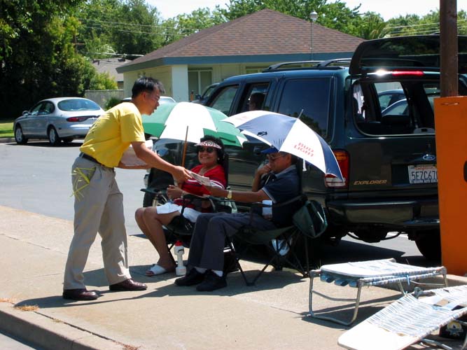 法轮功的整个队伍与众不同,功法示范方阵更是独具一格,尤为孩子们所喜爱。他们叫喊着,“我喜欢那些炼功人,他们真特别,太棒了!”有些未能顾及到的观众自行向学员索取资料,连孩子们也都不愿落下。他们伸着小手,“我也能要一份吗?”“还有我呢?”