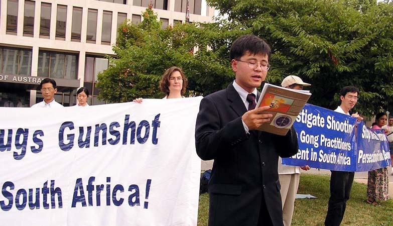在向澳大利亚驻美大使递交的信中,法轮功学员希望澳大利亚政府保护澳大利亚法轮功学员的基本权益,和南非政府一起调查这桩枪击案,并和各国政府一起谴责江氏国家恐怖主义行径。