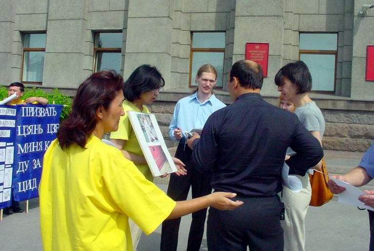 伊尔库茨克市法轮功学员要求俄罗斯政府谴责中国江氏集团的恐怖主义行径,谴责江泽民对法轮功的迫害。