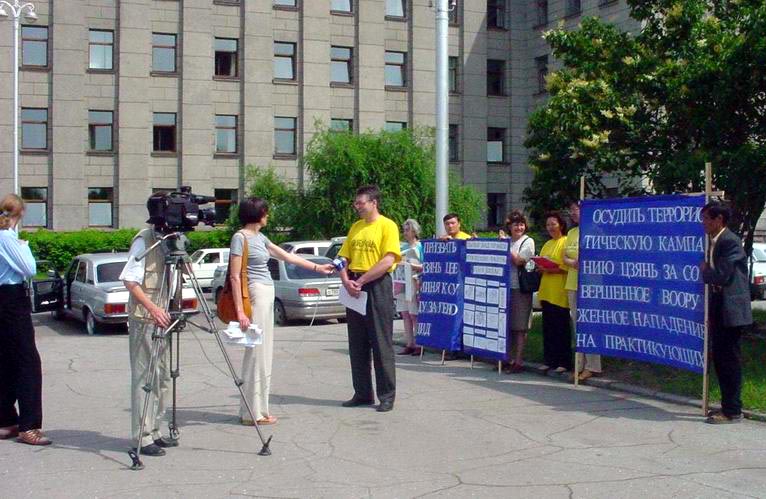 伊尔库茨克贝加尔电视台在当天的新闻节目里第一条新闻就报道了这次活动。报道中法轮功学员在记者采访时说:“我们希望以这种方式来制止在中国对法轮功的迫害”,另外一名学员讲到他在中国遭受了中国安全部门3次绑架:”他们把我从汽车里强行拽出来,我的头被他们套上了黑的布袋…“