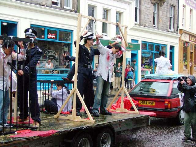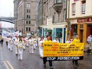 活动过程中,阴雨绵绵不断,仿佛苍天也为法轮大法弟子遭受的不公和苦难落泪。雨中的行人虽行色匆匆,但许多人仍愿意接受法轮功真象传单。游行队伍从市场街出发,途经Waverley桥和王子街,在城堡街结束。历时1个半小时。爱丁堡的民众在前一日欣赏到法轮功团体所展示的美好之后,在第二天又目睹了法轮功在中国所受到的酷刑折磨。强烈的对比使民众加深了解了江泽民集团所犯下的反人类的罪恶。