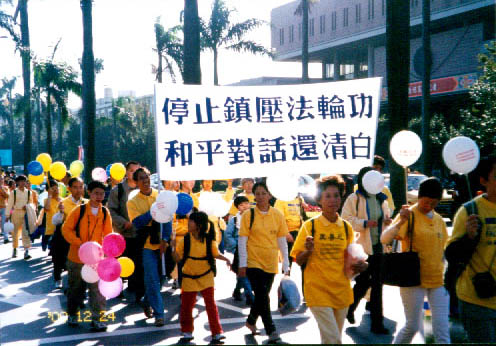 眼见江氏集团对大法的迫害和造谣污蔑,蒙蔽世人,危害全人类,除了参加台湾本地洪法和讲清真象活动外,我多次出国讲清真象,两次到芝加哥声援诉江案,两次参加华盛顿 DC法会,东南亚洪法等,七次去香港向可贵中国人面对面讲清真象。在香港我们所展示的图片深深震撼着人心,记得有一次一位50多岁的大陆游客,看完真象后击手顿足的说:“这是什么政权,这样危害人民?”三年前到香港的游客遇见法轮功学员脸色都很难看,经过我们不断讲清真象,世人越来越清醒,现在大多数人都喜闻乐见法轮功真象。