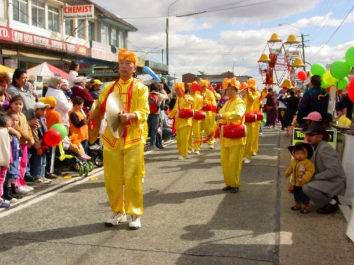 这一天风和日丽,晴空万里,清晨近20个团体身着传统民族服饰及艳丽的节日盛装举行了欢快的节日游行。法轮功学员拉着“法轮大法好”和“真、善、忍”的彩旗,腰鼓队和“仙女”英姿飒爽的随着一路前行。一位来自考古拉(Kogarah)地区的西人女士向学员赞叹道:“你们的游行队伍真是美丽极了!”她告诉学员考古拉地区10月份有游行活动,她向学员询问联络方式并希望法轮功学员能应邀参加。