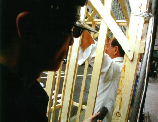 一在百老汇大道扮演打手的警察说:“想一想很可怕,我拿电棍勒老人脖子的手稍一用劲,就会把人勒死的。真想对中国的警察说一句,不要再充当江泽民的打手了,人要有良心,家里都有父母妻子儿女,要为自己也为家人着想,自古说善恶必有报呀。”