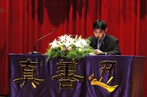 李善是个纯朴的农村妇女,大字不识几个,但今天,李善显得格外庄重、漂亮。李善平静地接过麦克风,以大法弟子的慈悲祥和地对大家说:“哥哥说的是我的现在,我很惭愧地告诉大家,以前我对公婆并不孝心,而且只为养老人,我同家里人都闹到乡里法庭,是法轮大法改变了我。大法让我懂得了与人为善,大法教我孝敬老人、做好人、做好事……”电视台的记者录下了这一珍贵的镜头。李善真真切切的话语使大伯哥热泪盈眶,也使在场的很多世人感动的流下了眼泪。此时,人群中有一个人高声喊道:“李善,你不愧为李洪志的弟子,敢说真话,我佩服你!”当时气氛很祥和。