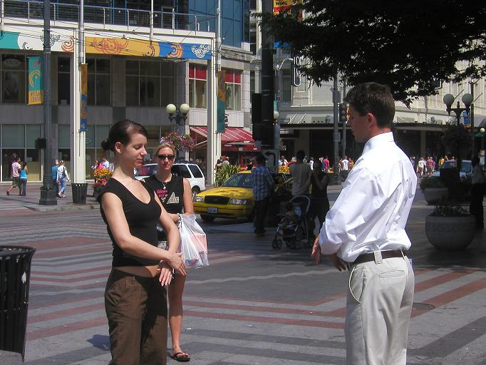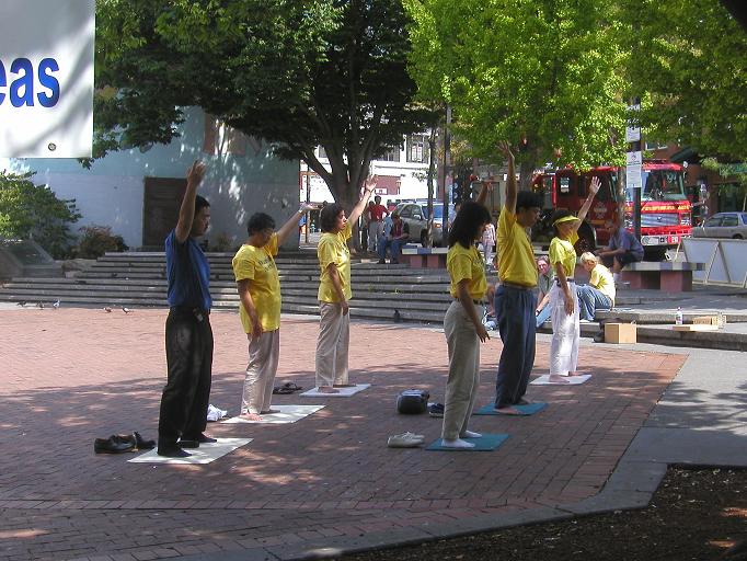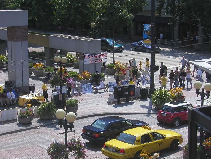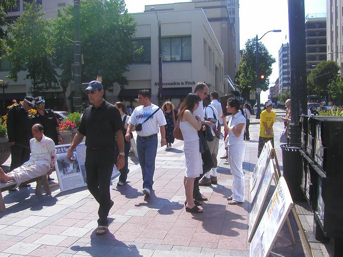 【明慧网2004年8月17日】2004年8月14、15日周末两天,法轮功学员在西雅图唐人街和市中心分别举办