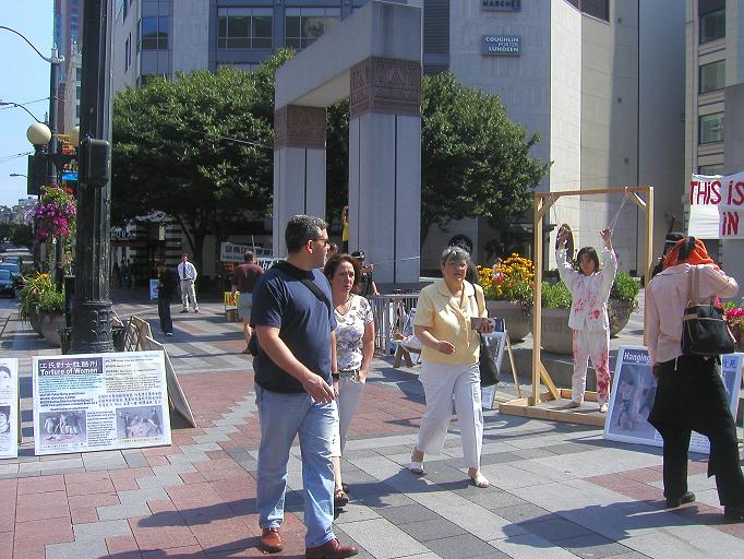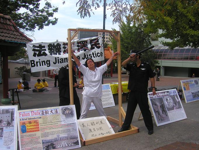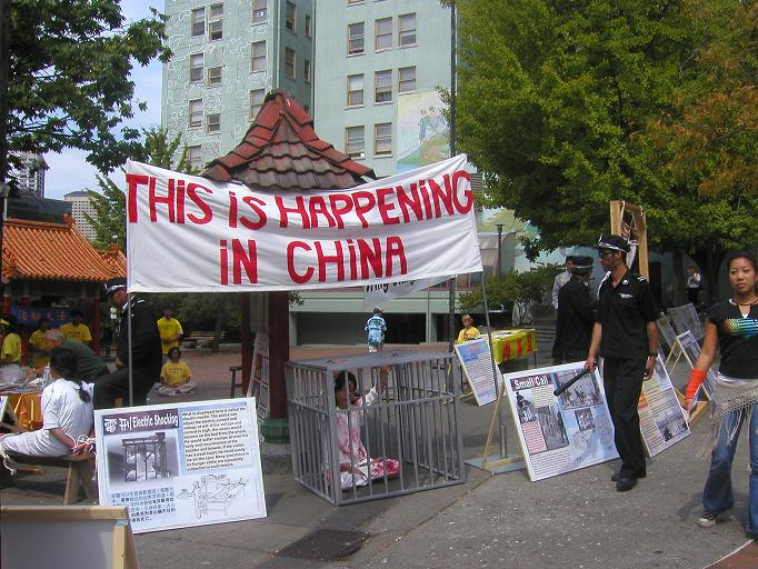 西雅图法轮功学员在唐人街与市中心举办酷刑展(图)