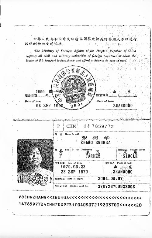 ![]() 张树华的护照 | ![]() 申请补发新护照的收据 |