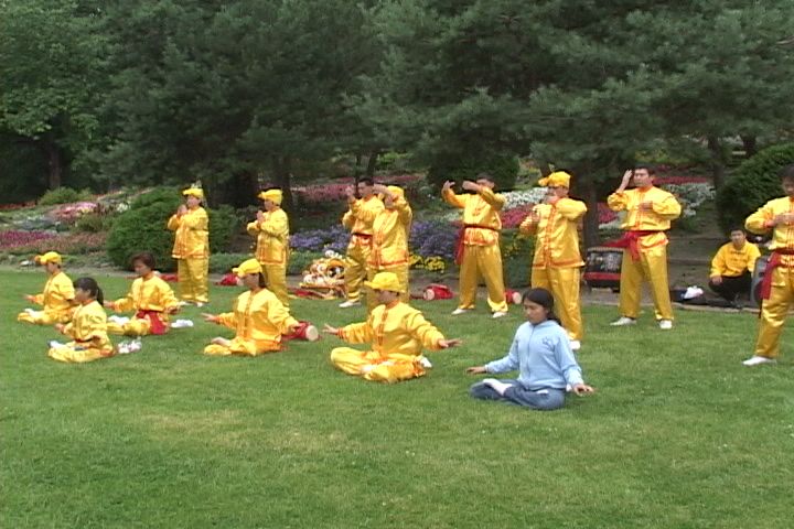 ![]() 功法表演 | ![]() 法轮功学员表演的狮子舞,腰鼓舞 |