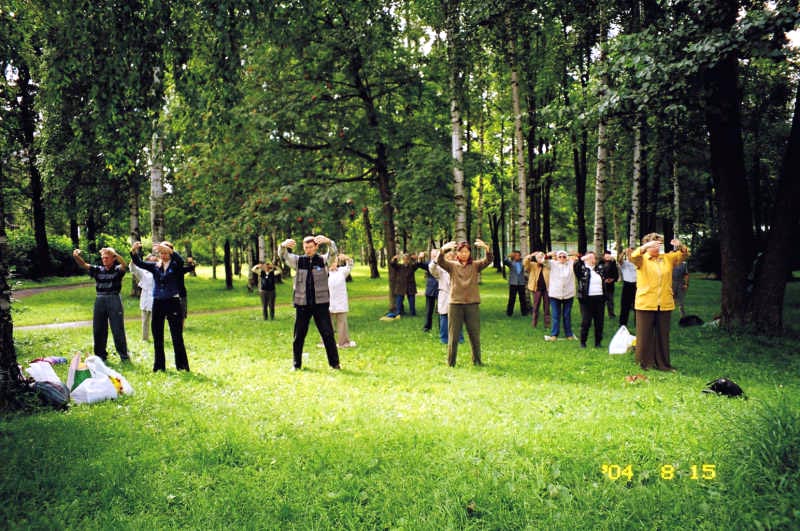 在圣彼得堡公园洪法炼功