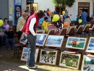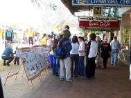 清晨,法轮功学员于岚卡额集体炼功,集市的中心广场也同时举行了真象图片展,许多市民认真的看阅并向学员询问关于在中国发生的对法轮功学员残酷迫害的详情。