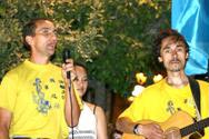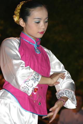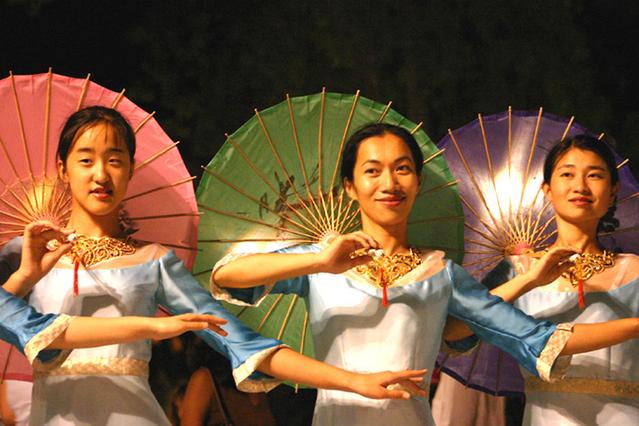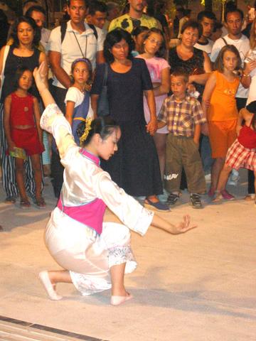 除了展示法轮功功法以及让人们明白迫害真象外,法轮大法学员也为雅典市的人们表演音乐节目及舞蹈,一名来自台湾的表演者展现甜美的舞姿,一群女士搭配“莲花颂” 歌曲表演伞舞。还有学员演奏中国传统乐器及歌唱,来自德国的学员则演唱“法轮大法好”。大批群众深受这种小型的户外音乐会的吸引。