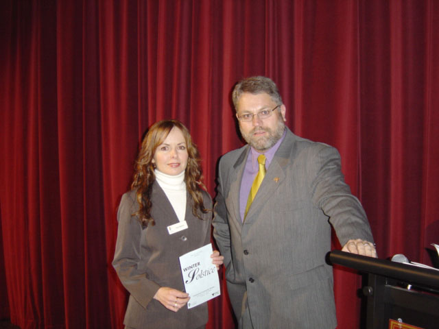 ![]() 导演Sue女士与主持Smith先生 | ![]() 法轮功学员表演的莲花舞 |