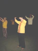 总共约千名学员参加了烛光守夜,千盏烛光于夜色中遥相呼应,气势庄严肃穆而又不乏温馨。学员们大都衣着黄色T恤,整齐的排列着,或炼功,或发正念,一切显得是如此的平和而坚定。