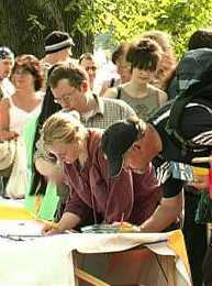 在听说爱尔兰留学生赵明因为学炼法轮功、在返回北京探亲时被拘禁、并惨遭江氏爪牙的酷刑迫害、到最后是如何被解救出来的故事,来自爱尔兰的民众明白了一个请愿签名能发挥有效的作用,都决定支持“公审江泽民”的活动。一个三代同行的家庭也在请愿书上签了名。