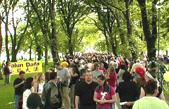 在许多愿意接受传单和了解真象的中国人中,有一位女士说她希望法轮大法很快会在中国获得到平反。还有些台湾人说,现在台湾有近四十万人学炼法轮功。