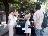 在举行新闻发布会之前,法轮功学员造访各个媒体,向媒体职员讲真象并赠送他们内含新闻发布会邀请卡的信息材料。许多人在听闻学员们为了让当地人们了解法轮功真象不远千里而来时都深受感动。
