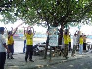 有缘修炼受益良多 讲清真象洪扬大法(图) ─ 一位台湾退休公务员的修炼故事 。两年多前我的后脚跟一着地就痛,去医院检查医生说是长骨刺,从此无论室内室外都要穿鞋垫。修炼四个月后我的脚完全好了。因为公务繁忙,常感眼睛疲劳酸痛,修炼后完全改善。心性不断提升,对于繁琐的工作更能轻松面对,每天都过的很自在快乐。我从大法中受益很多,所以积极参与洪法讲清真象,每次的提升都很大。
