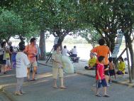 2004年7月31日,西雅图市民迎来了历时一个月的“海洋节”活动中的最高潮─炬光游行。主办单位邀请15名法轮功学员在炬光游行中身着法轮功黄色T恤衫,手持主办单位的奖旗引领得奖花车進行游行。在游行开始前的1、2个小时,我们结识了许多游行工作人员和游行参与单位,很多人询问法轮功是什么。华人和亚裔观众看到我们有如见到亲人一般使劲挥手致意。