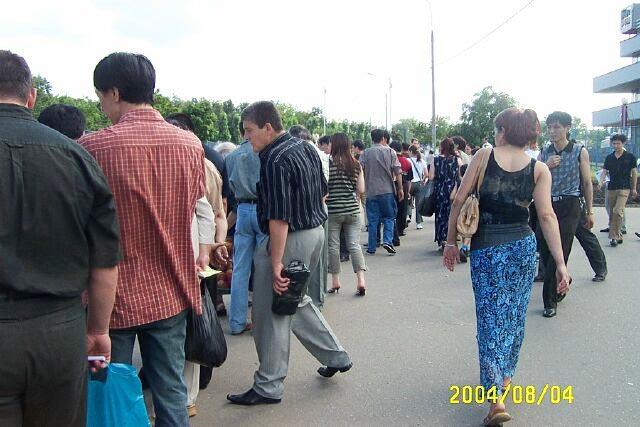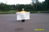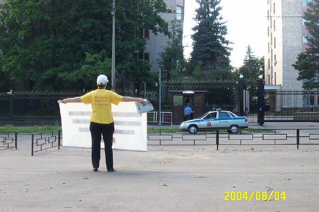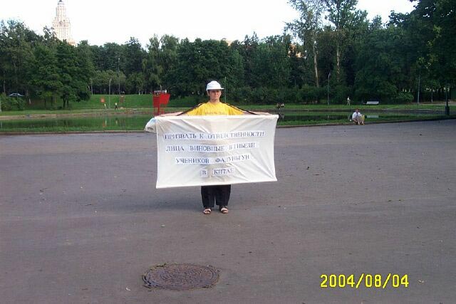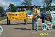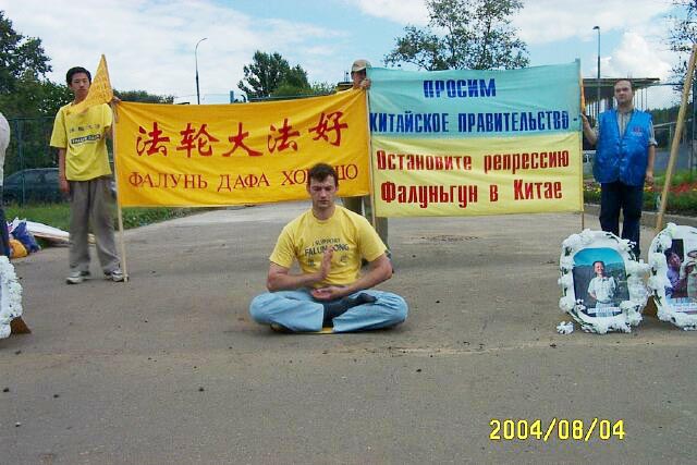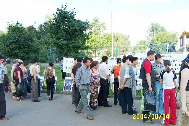 【明慧网2004年8月7日】2004年8月4日法轮功学员在莫斯科中国人集中的繁华地区——“依兹麦依洛娃”市场举行集会和并在莫斯科中使馆前举牌抗议中国江氏集团残酷迫害法轮功学员,抗议江氏的帮凶薄熙来到莫斯科访问。