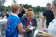 今天成百上千的中国人和俄罗斯人路过这里,有时几十人聚集在展板前认真的观看展板和听学员的介绍。有学员不停的用麦克风向过路人介绍法轮大法和在中国发生的对法轮功学员的非法迫害;一些学员发正念,表演功法;学员们用中文和俄文向每个过路人讲真象,发放了大量的资料和写有“法轮大法好”的纸莲花。许多中国人向学员提出了各种他们不明白的问题,学员们抱着慈悲祥和的心同他们交谈。过路人都接受了真象资料和报纸。这次活动使许多人明白了真象。