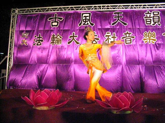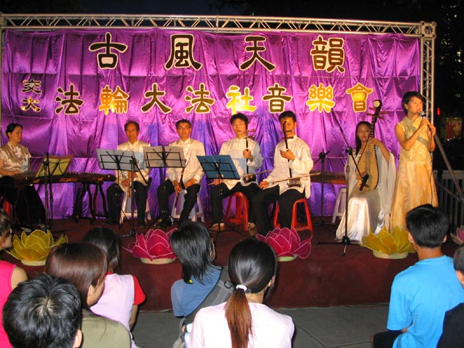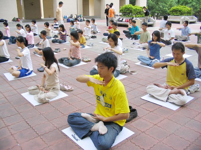 2004年7月3日至8月15日在台湾宜兰的冬山河亲水公园举办国际童玩艺术节,数十位宜兰法轮功学员每人花费数百元购买门票進入园区,在园区内炼功、发送法轮功真象资料,向游客们展示法轮大法“真、善、忍”的祥和美好。