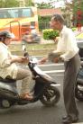 九十三岁的马伯伯在路旁往来不停的发着真象资料,直到活动结束,没有停歇。还有台湾学员林晓凯的妻子陈淑雅,去年为了营救被上海国安局非法关押的先生,不停四方奔走,受到总统陈水扁的关心,成功的救回了晓凯。如今她虽然身怀六甲,但是为了营救更多的人,她奔走得更勤了。