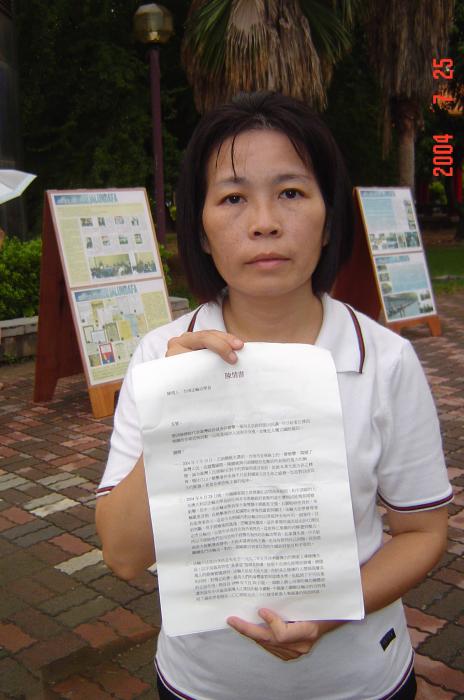 在台南市警察局第四和第六分局的协助之下,学员们顺利的向台湾总统陈水扁递交了陈情书:感谢台湾政府能给予法轮功一个自由的修炼环境,在法轮功的对待上一直与中共江氏集团之暴力恐怖行为成强烈的对比。此乃台湾法轮功学员之福,也是台湾人民之福。但愿有更多的正义之士一同来关注,制止中共江氏集团将恐怖主义向全球蔓延。