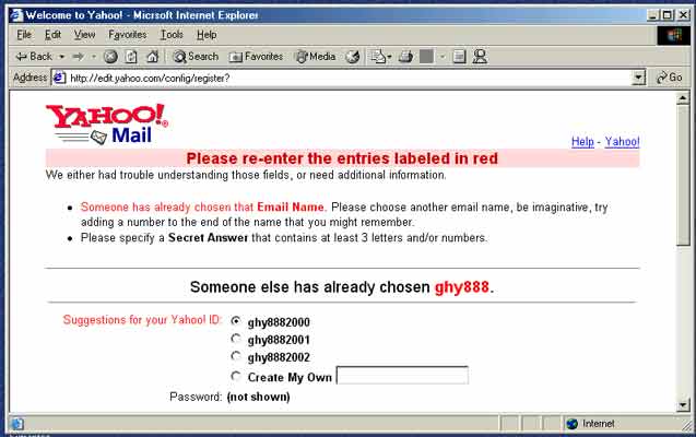 2.“Security Question”的回答太短。yahoo要求至少三个字母。