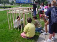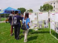 【明慧网2004年9月1日】明州市府大楼前的草坪上,法轮功学员举办的