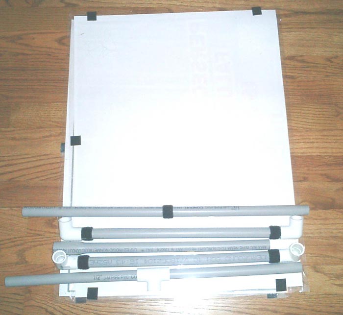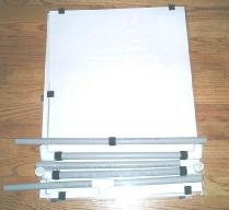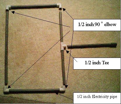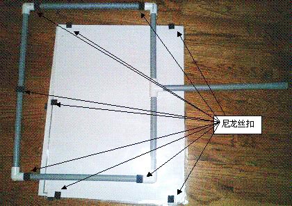 方法4:制作大一点的塑料管架子,使展览显得更正式。塑料管子在Home Depot有卖,产品名称为,PVC3/4”。方形的管子尺寸为5x5 feet。管子的连接和固定方法与方法2类似。如果使用之字形设计,方形架子的两面都可以挂布制海报,这样可以减少费用且节省空间(见图8)。