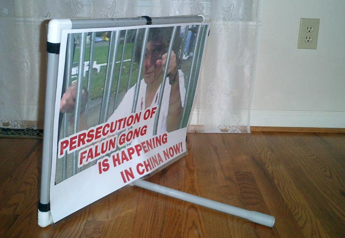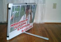 举办展是一个有效的讲真象的办法,但无论是否配以真人表演,在人力、物力,和财力上都花费较大。下面介绍几种经济方便的办法,使酷刑展能更方便的普及,即使只有2、3个学员也可以做。