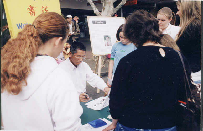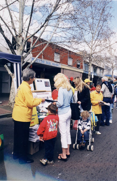 即日早晨,学员们从四面八方赶到圣玛丽斯镇。初春的圣玛丽斯小镇已经沉浸在一派节日的景象中。悉尼法轮功学员抓住这一机会向当地的世人讲真象,主要活动有:大法信息台,毛笔字,征集签名,炼功,发资料等。