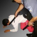 ![]() 恶警把电棍插到63岁的法轮功学员嘴里电,放在嘴唇上来回滚动电。 | ![]() 男警察骑在女法轮功学员身上。 |