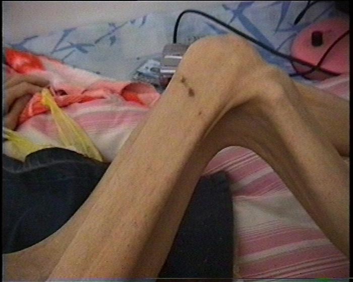 在此之前,王霞经历了漫长的两年零三个月的灌食迫害,多次遭到电击,被长期成“大”字型绑在木板上,在录像中尚能清晰的看到王霞腿上因长期被绑而留下的伤痕。邪恶之徒把灌食管长期插在王霞的胃里,十天半月才抽出来简单的洗洗。其间王霞几次出现生命危险。