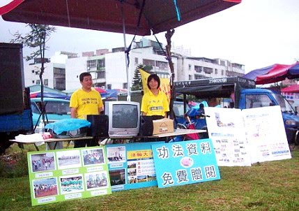 在会场除了有一连串的表演节目外,主办单位还安排了许多展位,展示原住民的传统美食及文物。但其中有一个非常特别,也是唯一一个非原住民设置的展位,就是介绍法轮大法的展位。法轮功学员在展位上放置了许多功法资料,供有兴趣的来宾索取,另外还用电视播放了许多真象影片,内容有:法轮大法使人祛病健身的亲身见证;在校园内老师教学生学习法轮大法后的转变,让家长都赞不绝口;中国大陆江氏集团为了迫害法轮功,而自编自导的天安门自焚事件的真象等等,让前来参观的民众都明白了法轮大法是个修心养身的好功法,许多人纷纷索取相关资料,并有一位女士当场表示要学炼法轮功。