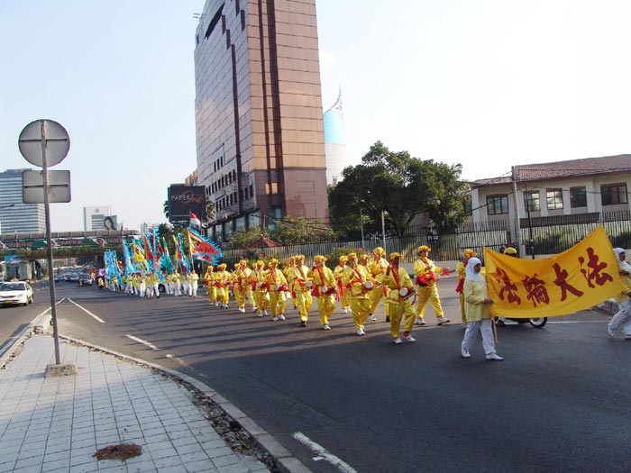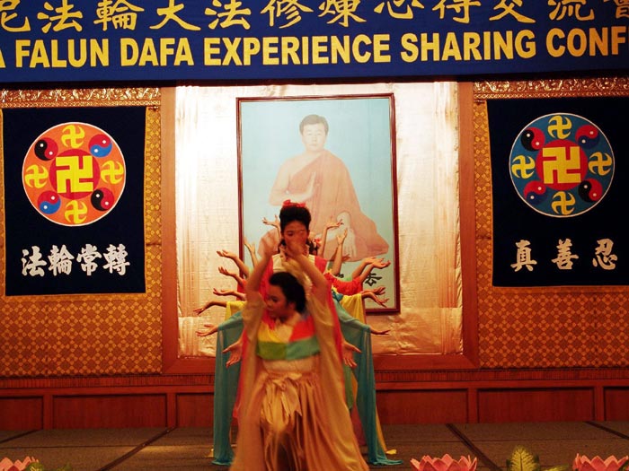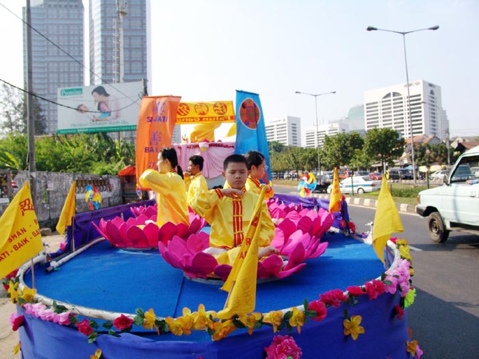 发言的学员来自各地,巴厘一间盲人学校的学生朗诵《论语》,校长赠送奖章给印尼佛学会表示感谢,由会长许文泰接受。此次法会的文艺节目,内容相当丰富,有唐装舞蹈“普度”,有雅加达和棉兰法轮功学员临时组成的合唱组,泗水学员穿起各地传统盛装,用快板赞颂“法轮大法好”。