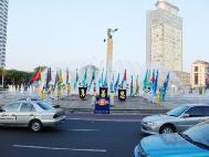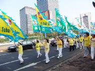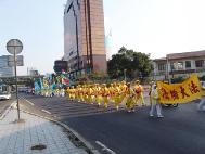 法会的前一天,法轮功各地区学员举办游行活动,游行队伍长达1公里。游行中有花车,功法演示,酷刑展,“审江”,目地是把江氏残酷迫害法轮功的恶行曝光。